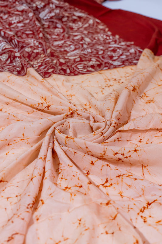 Chandan~ Sandalwood & Garnet Assam Mulberry Silk Saree – A Refined Weave from the Northeast