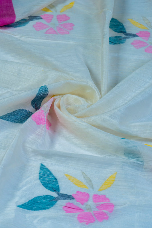 Kumudini~ Tussar & Muslin Silk Jamdani Saree – Bengal’s Loomed Poetry in Silk