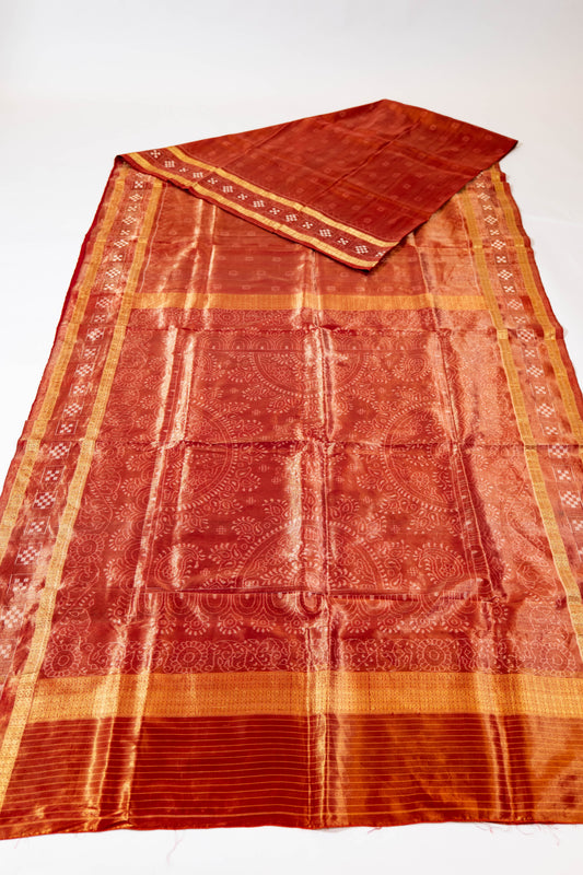 Champa~ Gold-Toned Tissue Sambalpuri Saree – Handwoven Elegance from Odisha