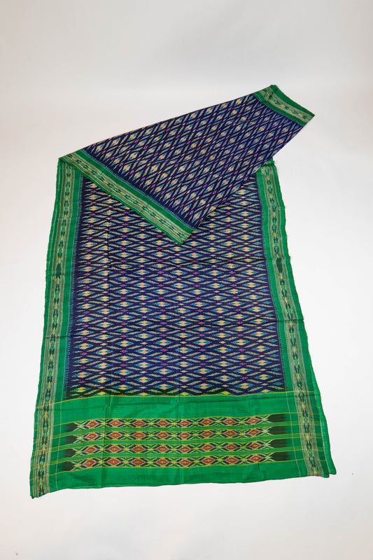 Kaveri~ Navy Blue & Green Pochampally Pure Silk Saree