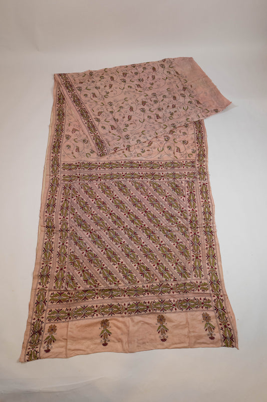 Kiran~ Tussar Silk Kantha Embroidered Saree