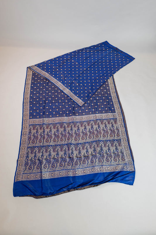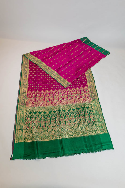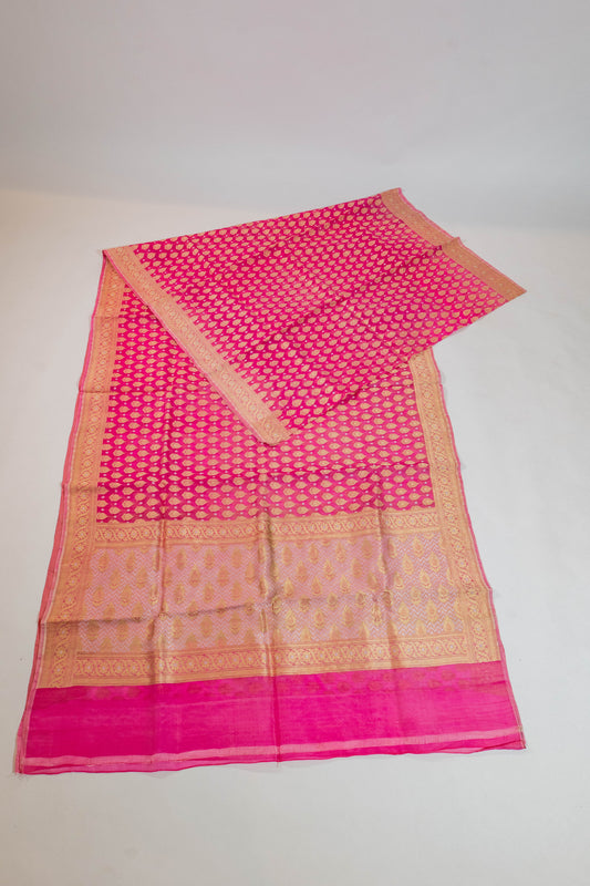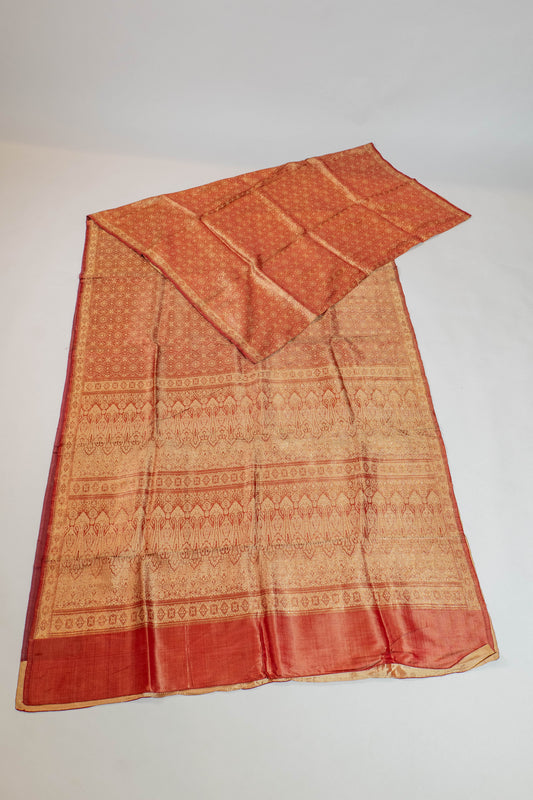 Suvarna~Reddish Golden Kimkhaab Tanchoi Bnaarsee Saree