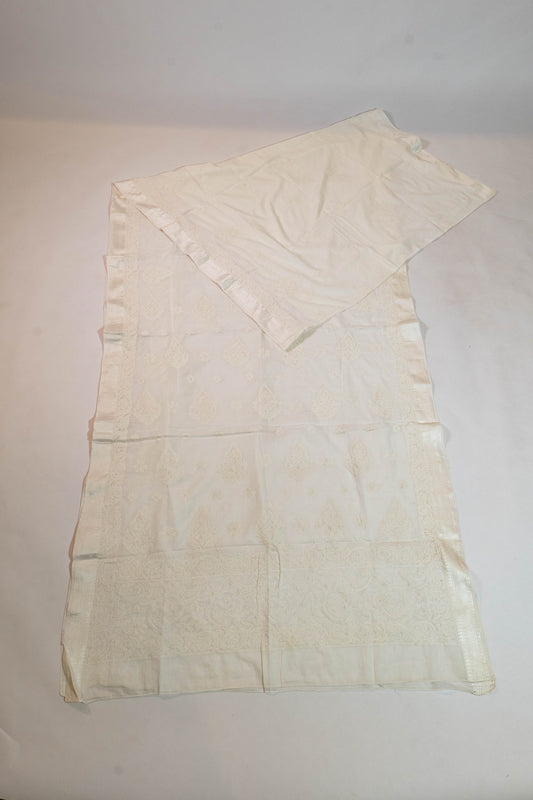 Jaya~White Lucknowi Chikankari Cotton Saree