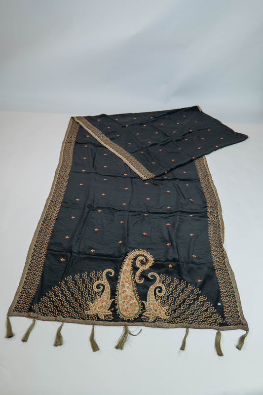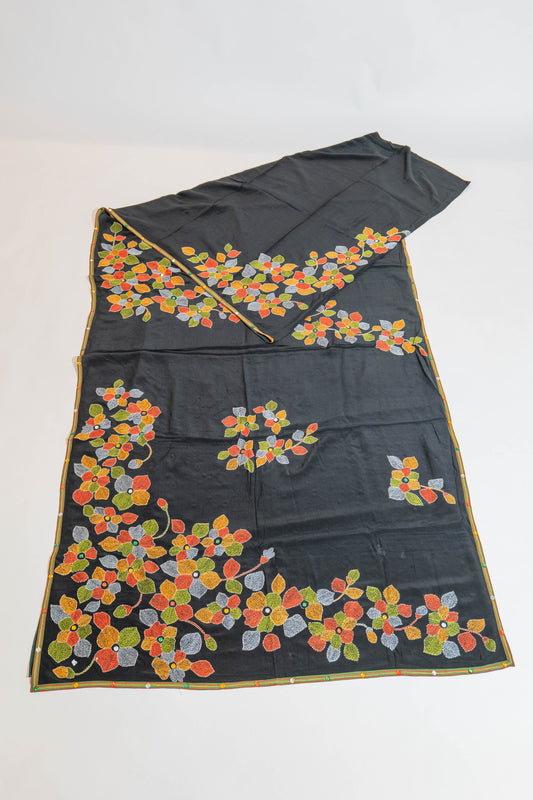 Gourye~Black Kantha Pure Crepe Silk Saree
