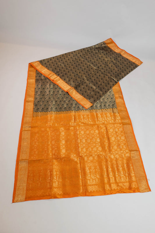 Vaani~Forest Green Orange Pure Silk Kanjivaram Saree