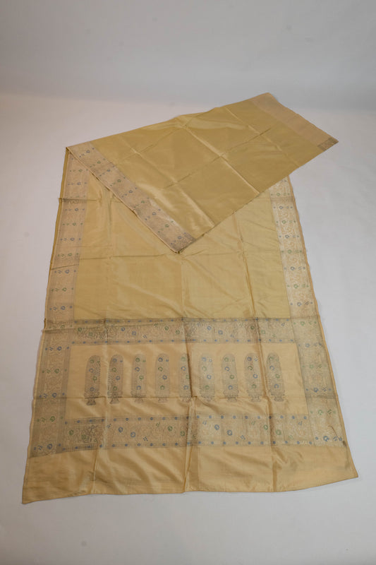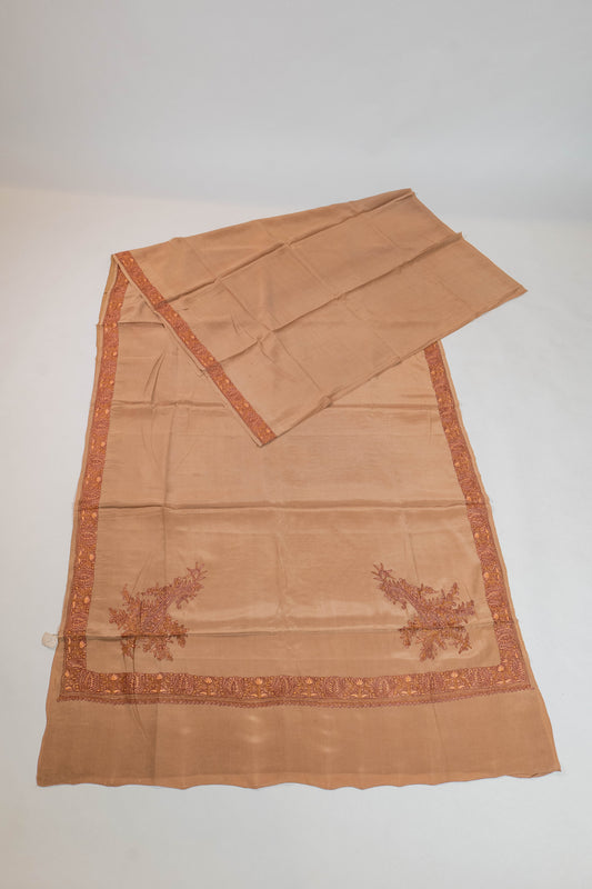 Sarvgataye~Beige Pure Crepe Sozni Saree